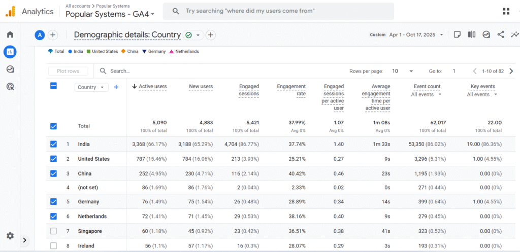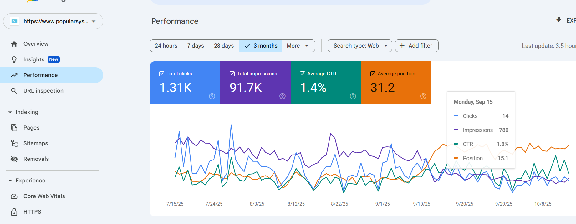 When I started with Popular Systems, the company’s old PHP-based website had no organic visibility, zero traffic, and no lead generation. The site’s structure, design, and content were outdated, and there was no SEO foundation in place.