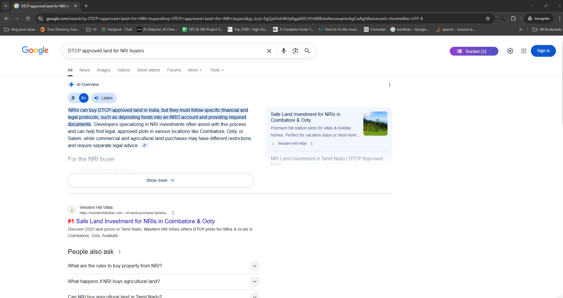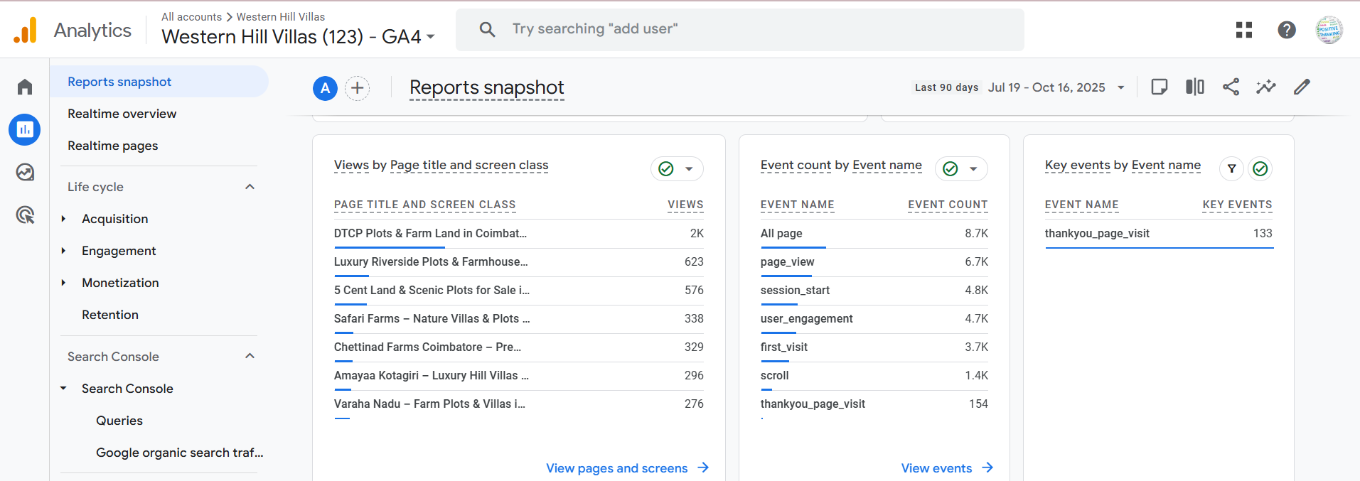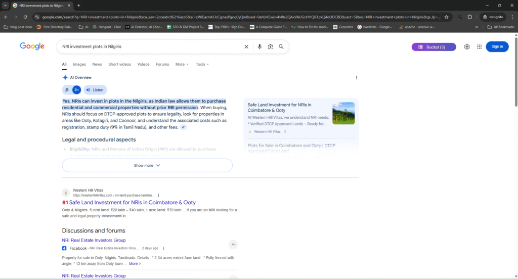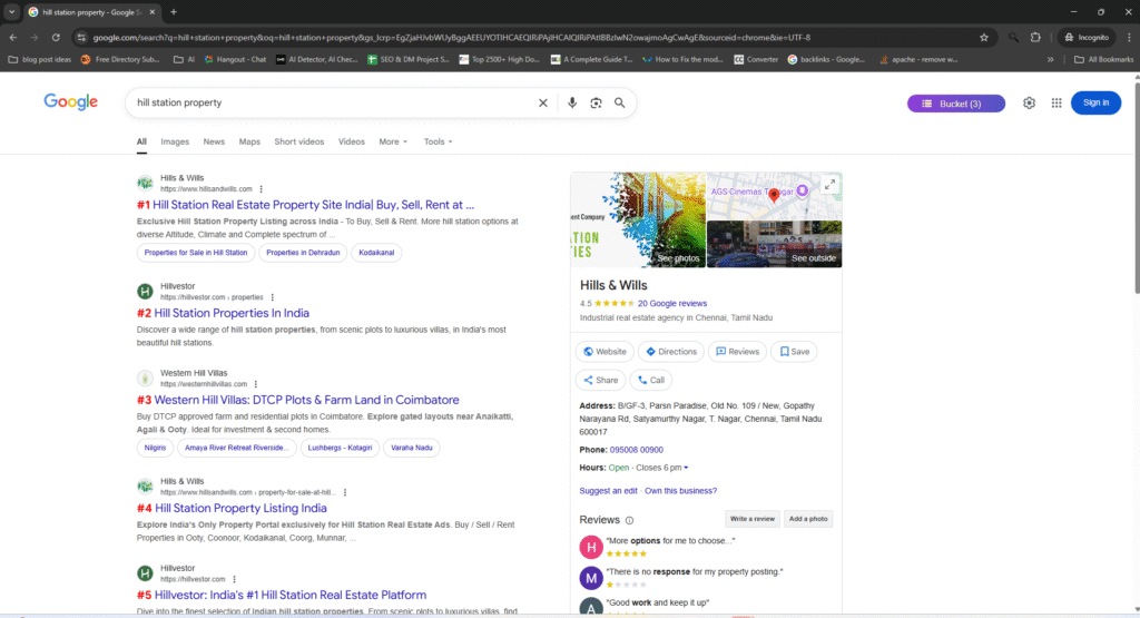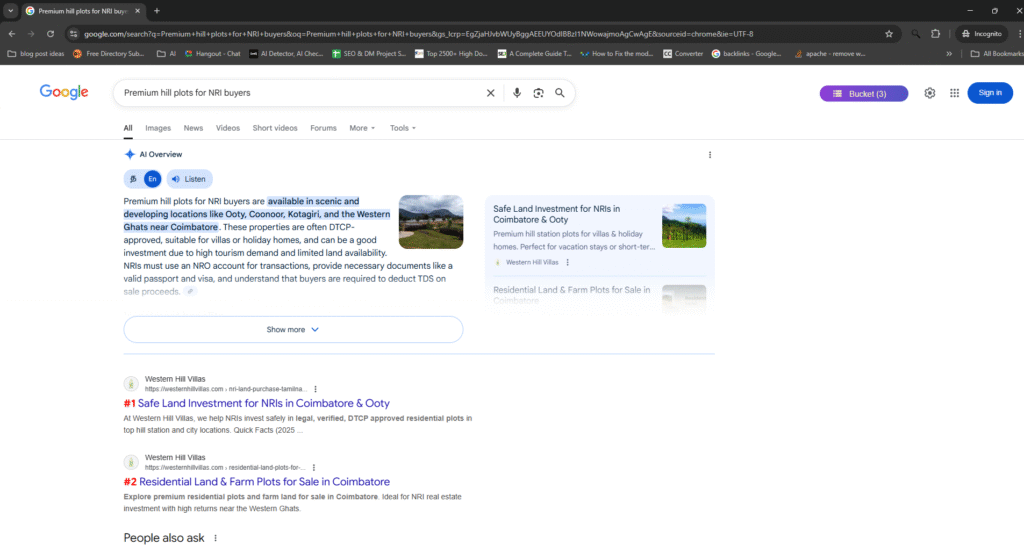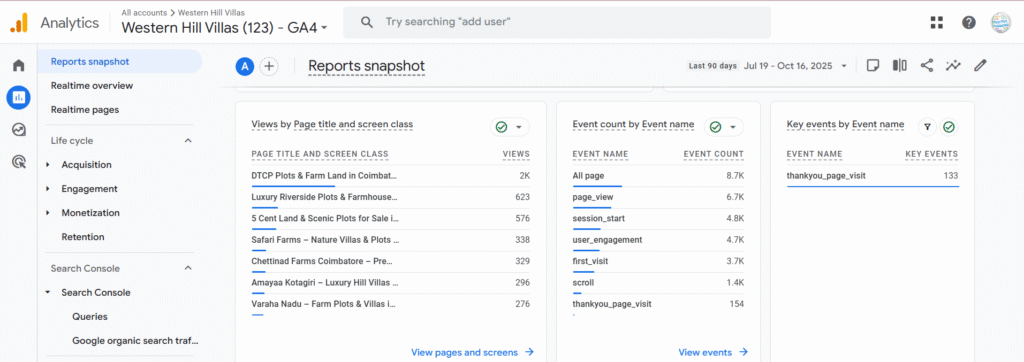 - Increased keyword rankings for terms like “Hill station villa plots in India,” “Luxury villa developers in Tamil Nadu,” and “NRI property investment in India.”